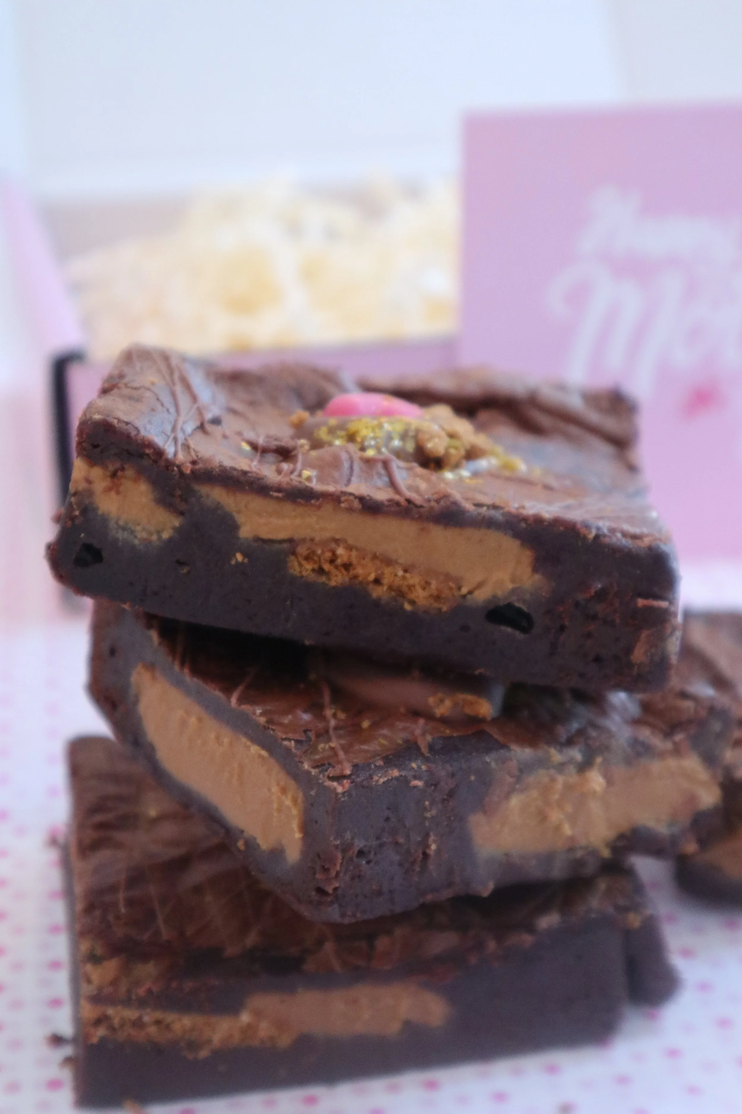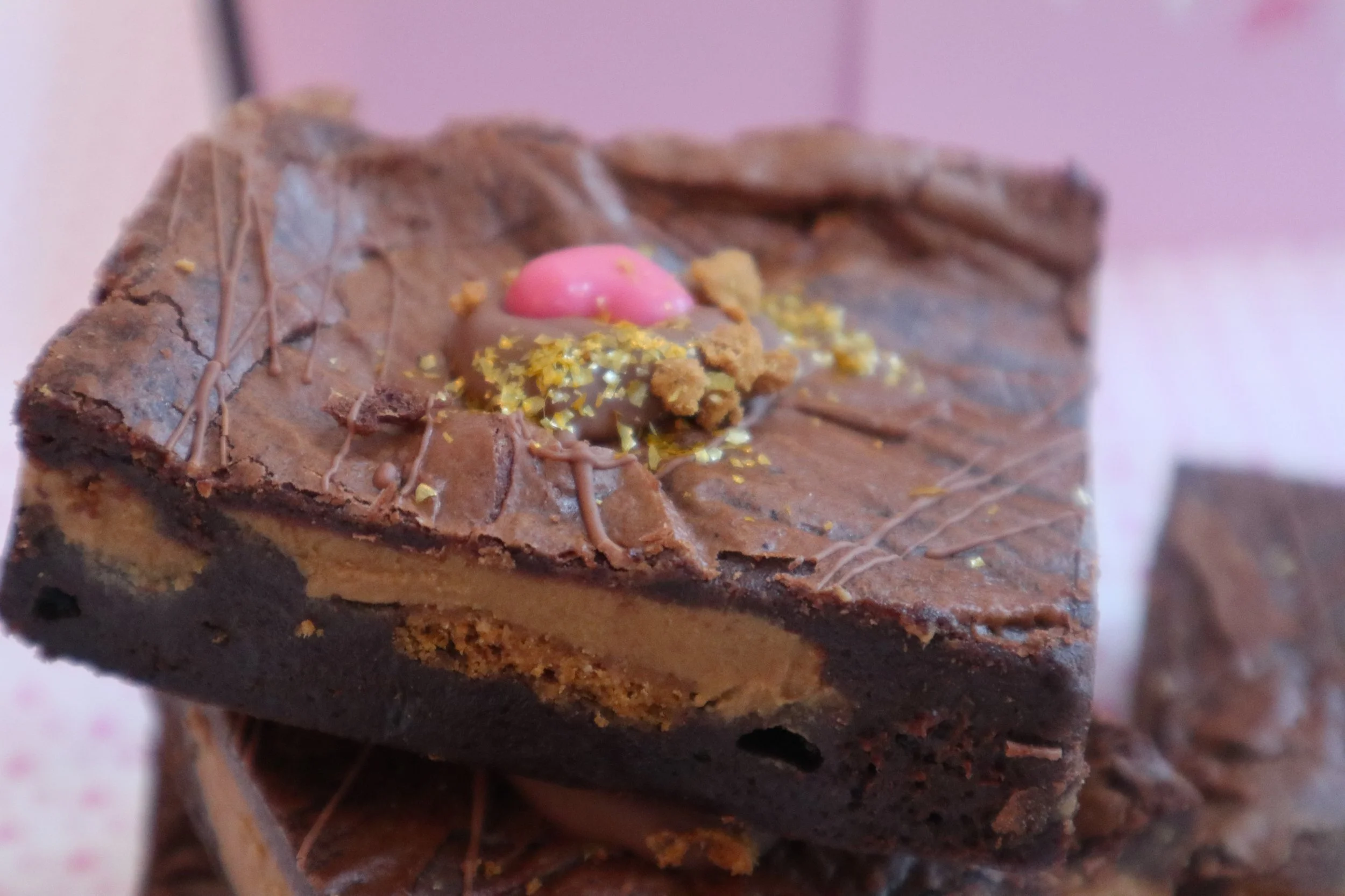 The finest 70% dark chocolate brownies layered with biscoff spread and crumbled biscoff biscuits.
